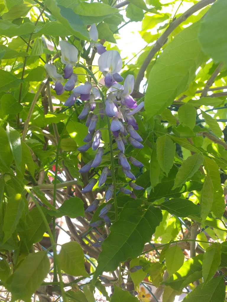Which reminds me . . . Down the hill, the wisteria’s been in bloom for weeks now. But my trees – planted 3 or 4 years ago – are yet to produce any flowers, despite me fertilising them in November. Lots of new thin branches and leaves but no flowers. Until this appeared last week. Which looks like being the only offering this year. In line with the advice that it takes 7-15 years for the plant to come into flower. Wish I’d known that when I bought the saplings.