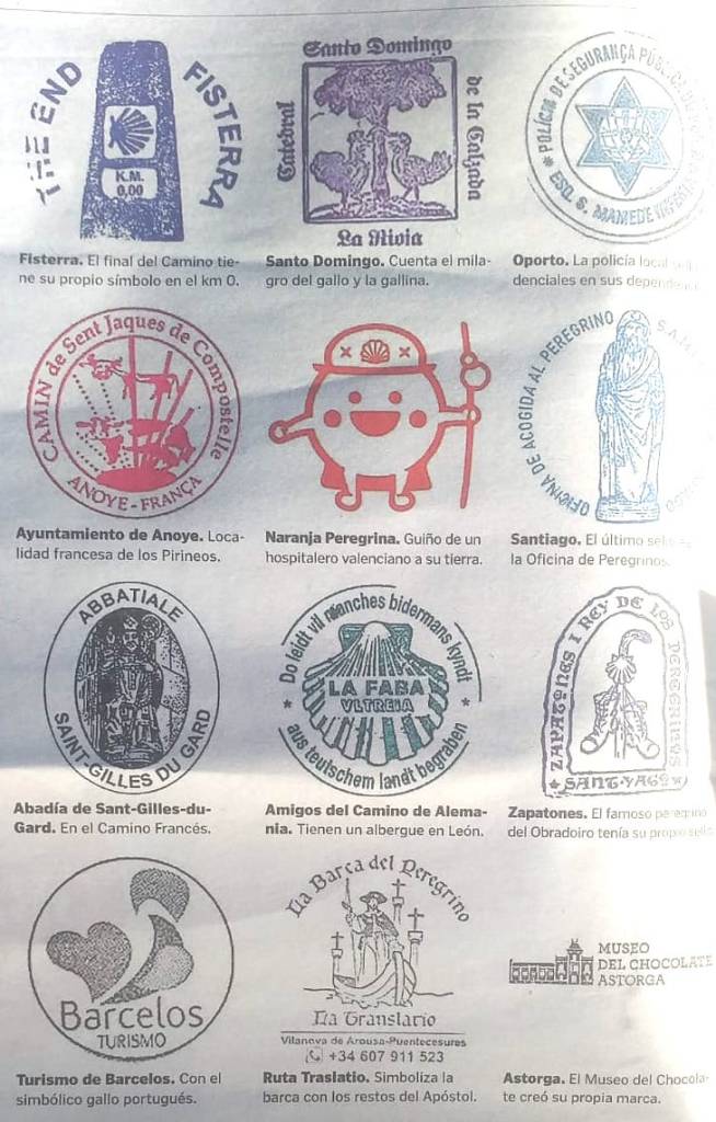 Some interesting stamps that ‘pilgrims’ can use to prove they’ve walked at least 100km and so can get their certificate (Compostela) in Santiago:-