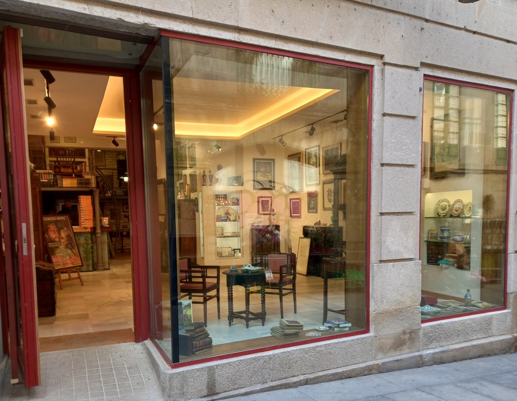 I’ve confessed more than once that Pontevedra’s retail scene is beyond my understanding. We seem to have an extraordinary number of bric-a-brac places. Not selling the sort of tourist tat that Lenox Napier writes as adorning Mojácar but shops like this one, which has just opened near the market in the old quarter:-
