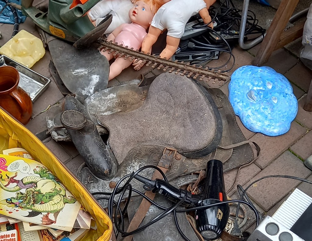What I used to call the Gypsy Corner of Pontevedra’s Sunday flea market has now become at least 50% of the stalls. And it would be very difficult to identify the most useless old object on sale there, from home clearances out in the countryside. Perhaps this ancient saddle:-