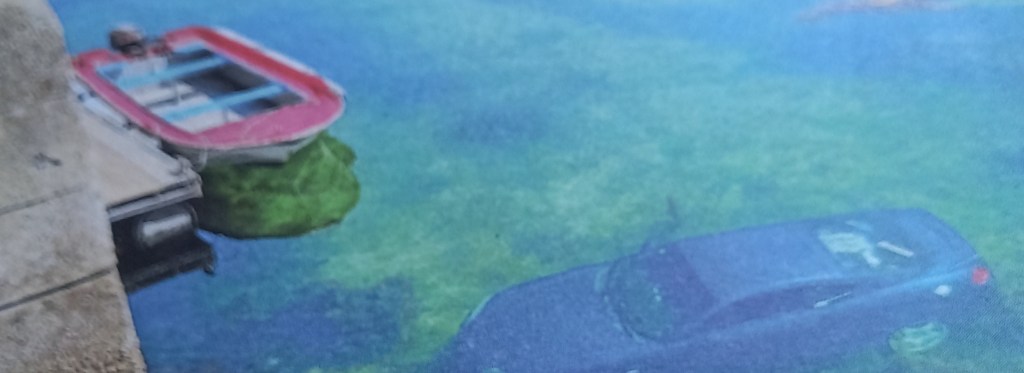 As a local paper said yesterday, it’s not uncommon to see reports of cars which have slid off Galician quays into the sea. This one still had a couple in it but, for some reason, they’d neglected to put the handbrake on. Possibly distracted . . .