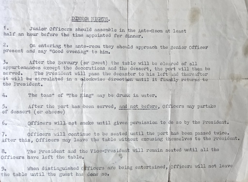 My father was an RAF pilot during WW2, stationed first in the USA and then in Germany, in Lübeck. I imagine this document was for dinners in the latter RAF place, rather than in the USAF place:-