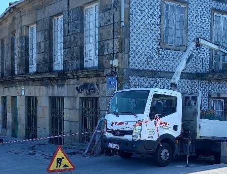 I’ve said a (council-owned)house at the Lérez end of O Burgo bridge would be ideal for a pilgrims’ albergue and expressed disappointment it was being left to go to rack and ruin. Shunned even by okupas. Well, bits of it have naturally started falling off, calling for emergency repairs:-