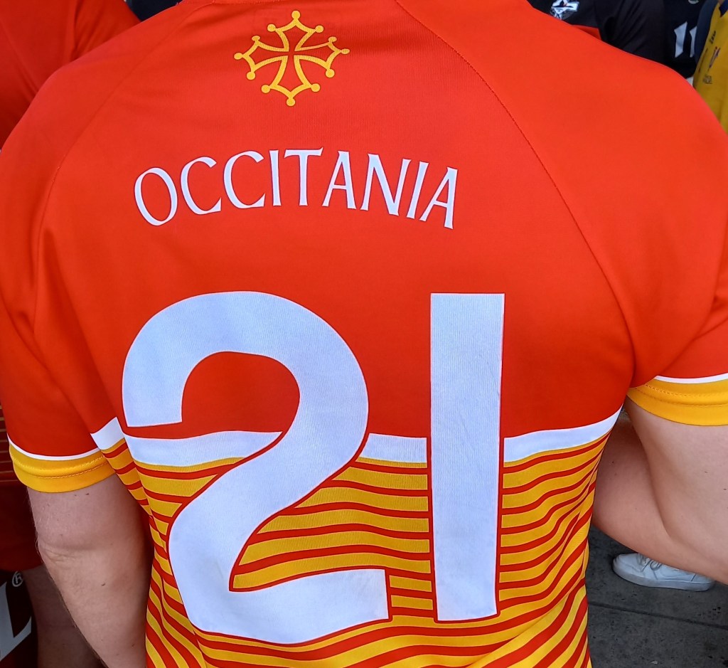 I very much enjoyed the final day of the Gaelic football tournament in Pv city yesterday and hope it’ll become an annual event. Thankfully, the temperatures on Friday and Saturday were well below Thursday’s 39 and no one seemed to suffer anything like heatstroke. It was a very good-natured event, with the predominant language – except among the French teams, of course – being English in an Irish accent. The sport is rarely violent, at least at this level, but the male teams in the final were, shall we say, rather more robust that the female teams in theirs. I half expected the raucous crowd to spontaneously erupt into C’mon Eileen at some point but, sadly, no. As mentioned, there were teams from Brittany in France but this was an unexpected shirt:-