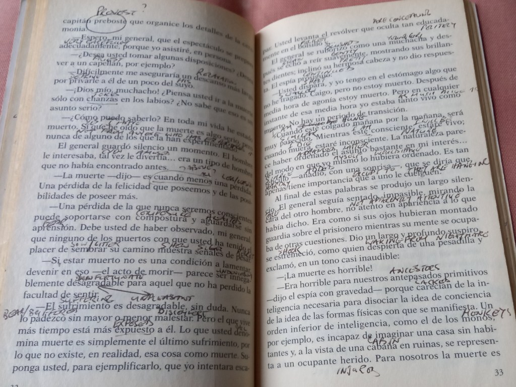 Looking for a book in Spanish for my visiting son-in-law, I came across a little book of short stories by Ambrose Bierce and realised it was the first book in Spanish that I’d attempted, back in early 2001. The glaring proof of this was many, many pages like these:-