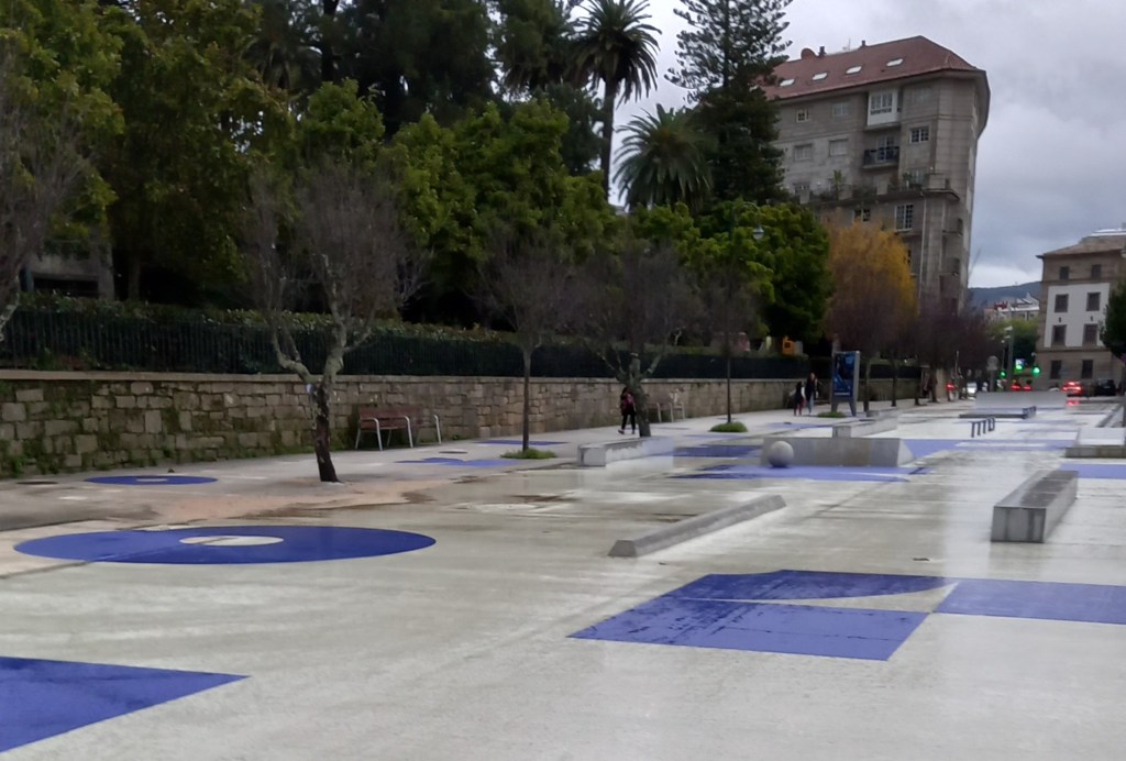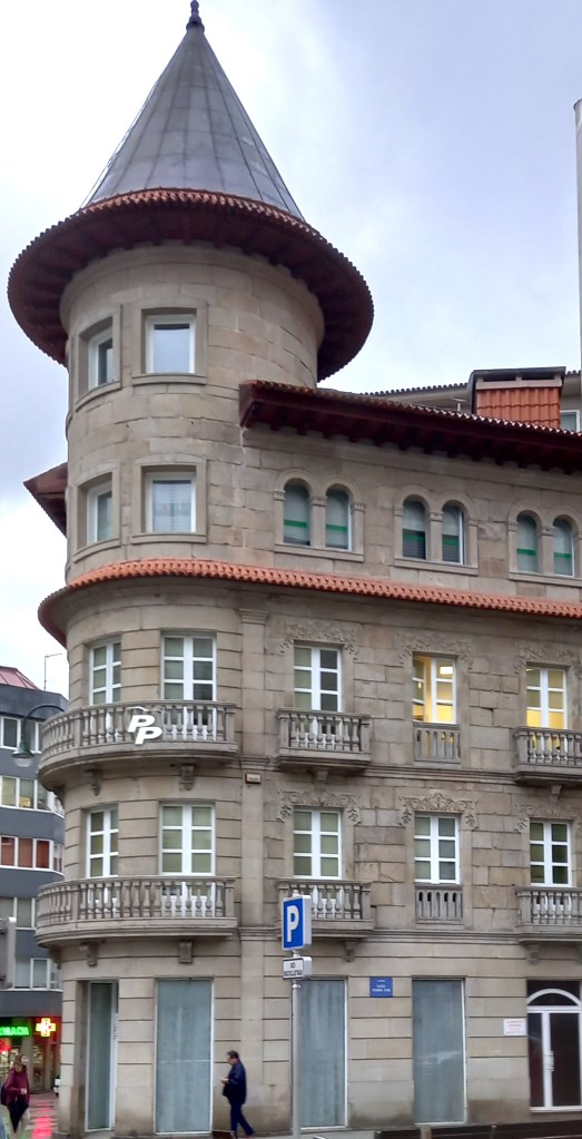 Galicia’s railway stations – always in granite – are usually very handsome edifices. This building possibly used to be Pontevedra’s, when the line ran alongside the road – Raiña Vitoria Uxía – that was ‘temporarily’ closed during Covid and is now permanently closed as a way into the city:-