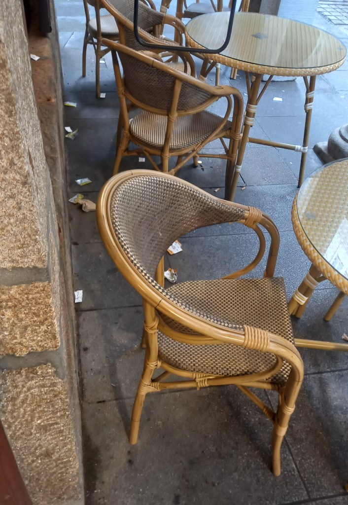 Down at street level . . . I had thought that the habit of just chucking your used tissues on the floor had passed into history. But it seems I was wrong At least as regards terrace tables.
