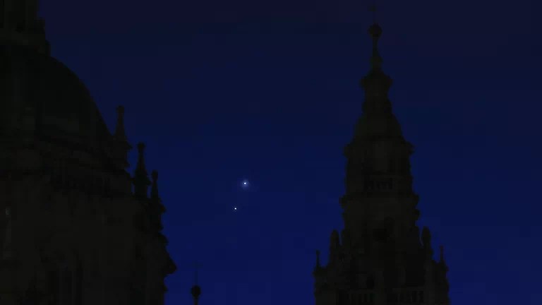 On Friday night, while waiting for the concert, I noticed 2 bright lights in the sky, low down and perpendicularly aligned. I wondered if they were on a tower I’d never really seen before. But no . . . ‘Twas Venus and Jupiter coming together in the Western evening sky. . . Not quite so perpendicular last night:-