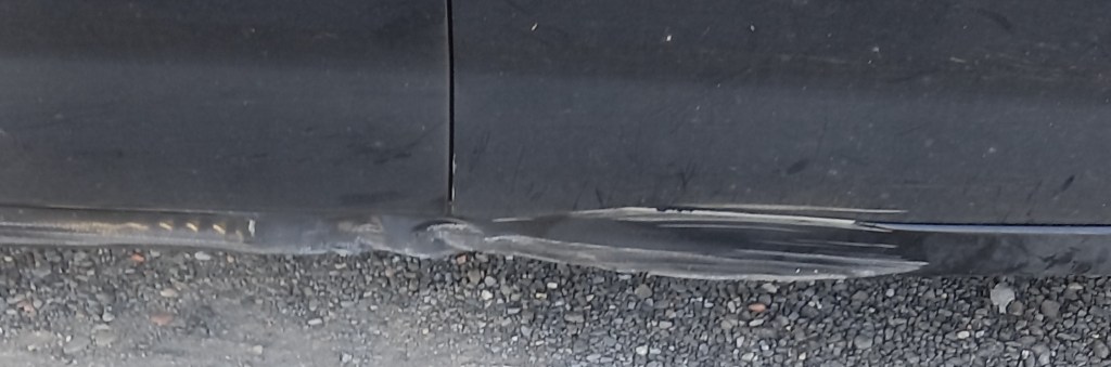 This foto of a car’s sill forced a smile of recognition and sympathy out of me. For I realised that the driver, like me, had drawn up beside a bit of Galician granite he or she couldn’t see from the driving position. Possibly when parking.