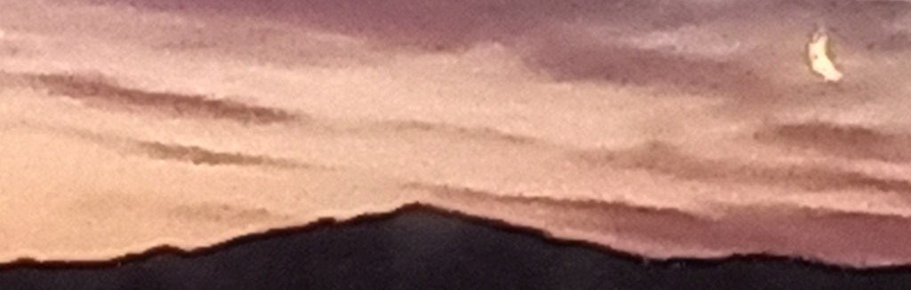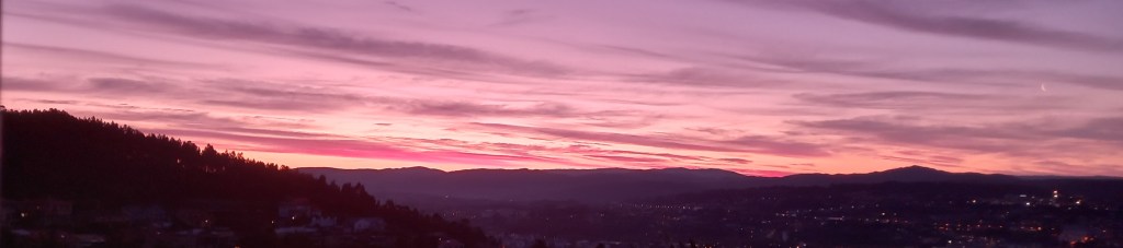 I originally took this for the lights of a plane coming from Vigo but it didn’t move, and blowing up the foto revealed this crescent moon:-