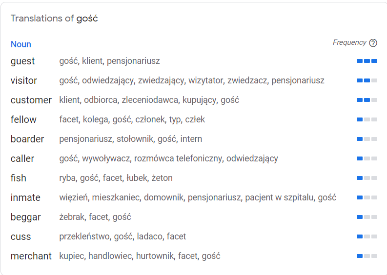 Welcome to new readers in Poland. Thanks to them, I’ve learned that the Polish word gość means fellow/chap/bloke/cove/guy/dude etc. but also ‘guest’. And, allegedly, visitor, customer, client, boarder, caller, merchant, beggar, inmate and . . . fish.