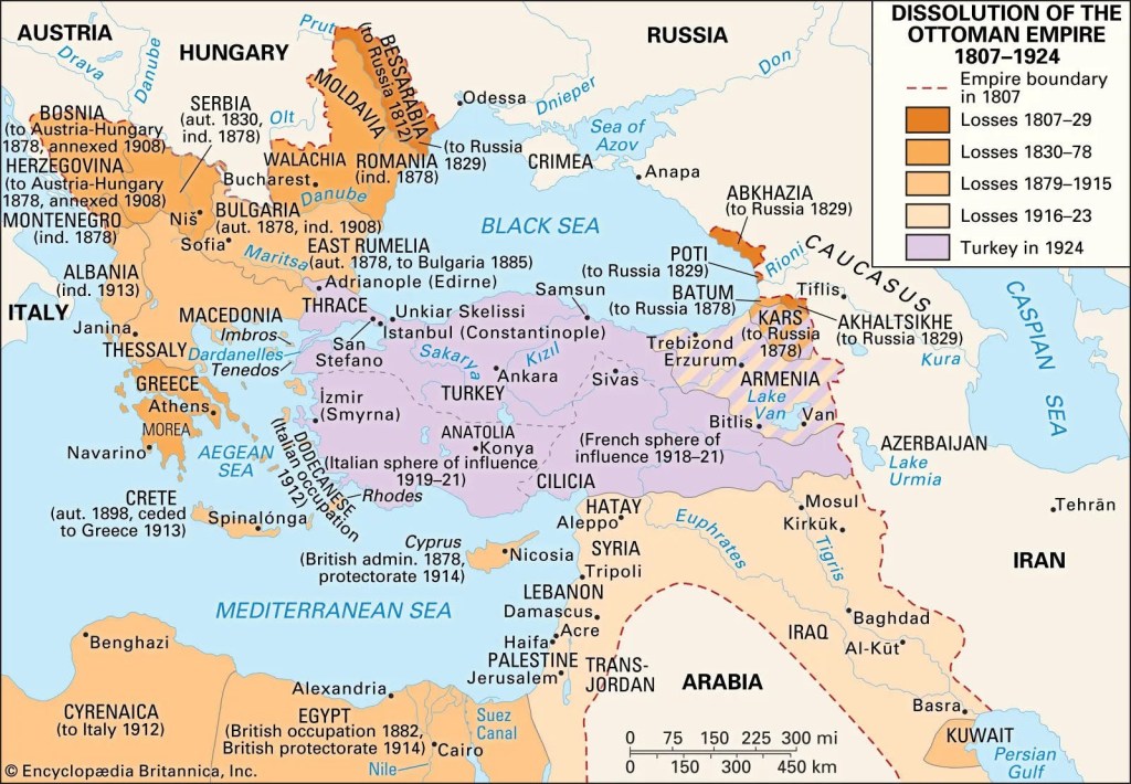 An interesting map of how the Ottoman empire shrank in stages.