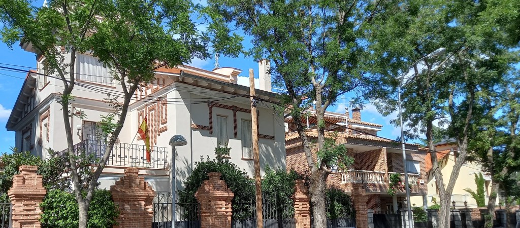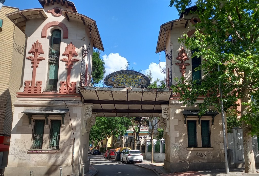 This section today centres on the (ex)’working class’ barrio of Carabanchel, which divides into the old village of Carabanchel Bajo and, further south, the newer – residential – Carabanchel Alto. It doesn’t boast much splendour but it does have something special in La Colonia de la Prensa, the first city of journalists in Spain. Per Wiki, and (largely machine)translated: The origin of this colony was the need to develop the land between Carabanchel Bajo and Carabanchel Alto, when both were independent municipalities in the Madrid region. Thus, in October 1910, a group of press professionals, “Los Cincuenta”, later called “Asociación Benéfica-Cooperativa de Construcción de Viviendas Baratas Colonia de la Prensa” and then “Ciudad-Jardín de Prensa y Bellas Artes” commissioned Felipe Mario López Blanco to come up with plans for the plot and the project, an example of perfect urbanization and landscaped rationalist housing.