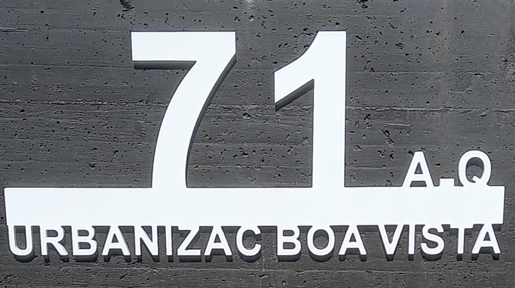 Behind my house – a little further up the hill – are 17 houses built over the 4, yes 4, years 2004-2008. So, they came onto the market after the end of the phoney construction boom and during the financial crisis which followed that. Meaning that nearly all of the houses remained empty for more than 10 years – just some of the 40 similar properties near me – and were only sold* recently, after they were offered at a massive discount to the current market price. Anyway . . . For some time, I couldn’t answer the question asked of me a few times: “Where is no. 71 in this street?” I thought it might be round the corner, down the hill. But, no. Finally, we have the answer in this plaque, erected a mere 15 years after the houses were built . .