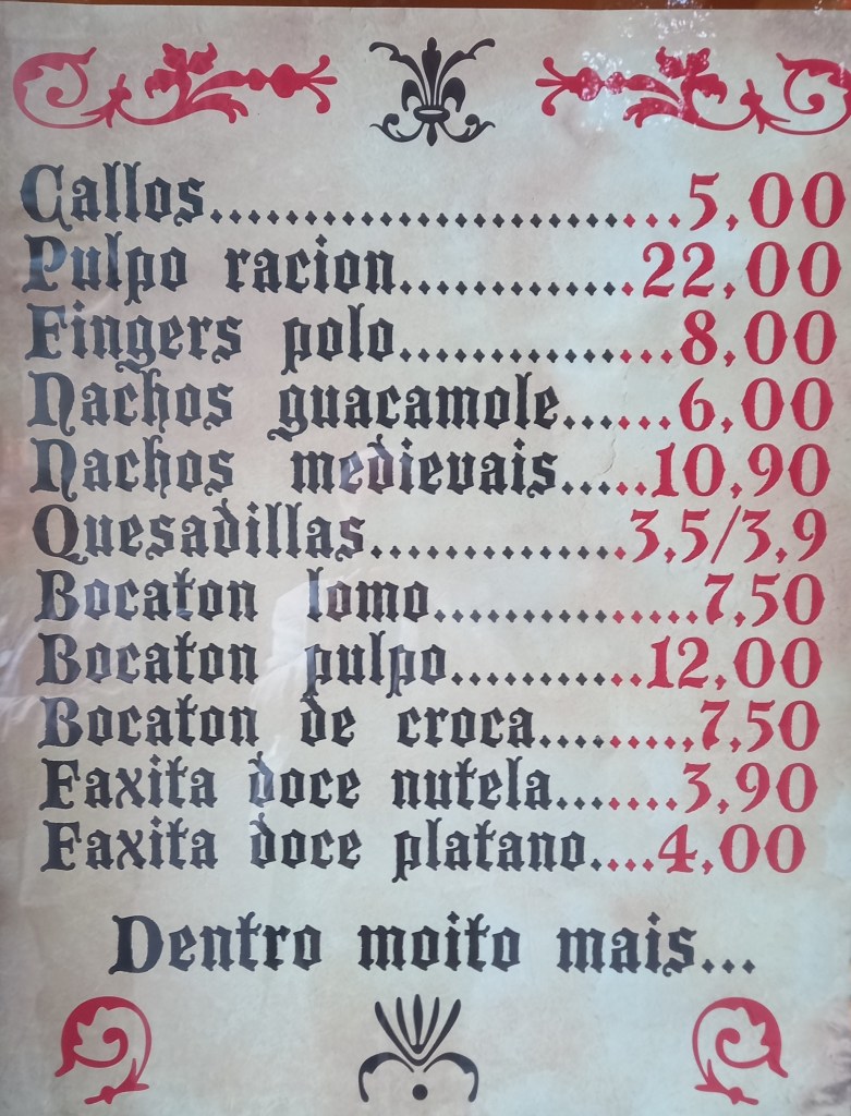 Another menu, in a mixture of Spanish and Galego, and tripe topping the list:-