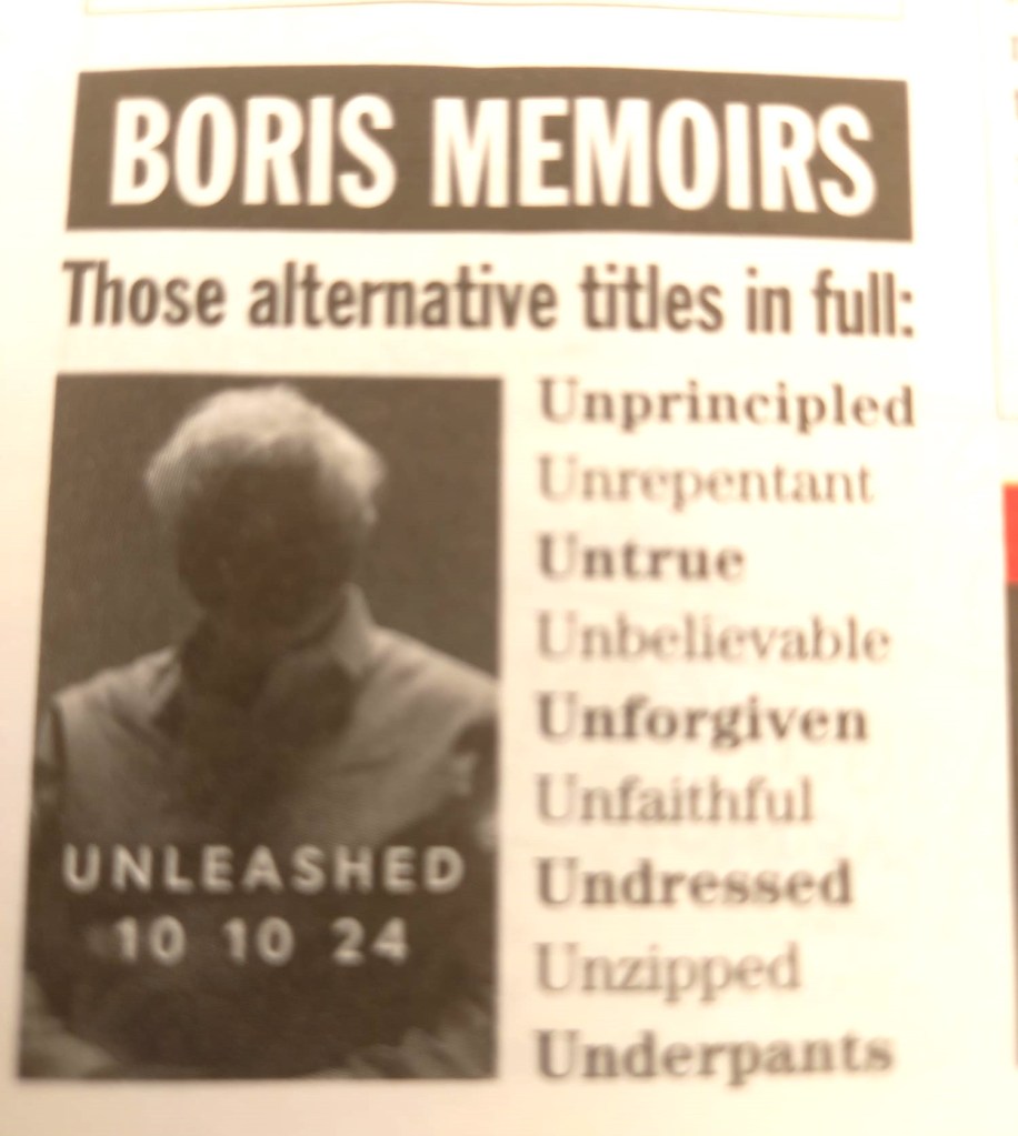 Boris has a book out, entitled ‘Unleashed’. Private Eye suggests some alternatives . . .