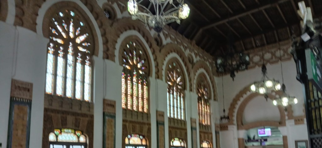 A better experience was taking my old friend to the railway station earlier in the day. It’s in Mudejar style and is truly glorious.