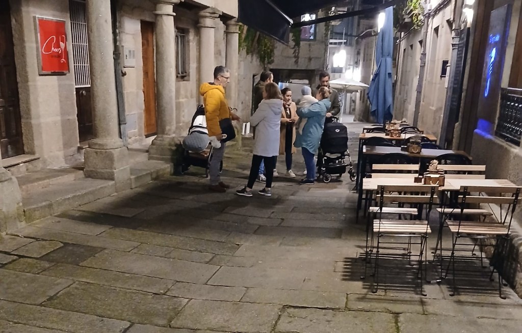 I’ve occasional noted that the Spanish lack of radar/antennae when it comes to the presence of other people. This is a good example. I had to weave my way through the 2 couples blocking this street last evening. Of course, if I’d said Permiso, they’d have apologised profusely.