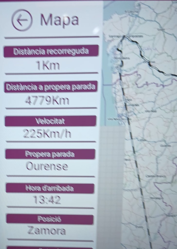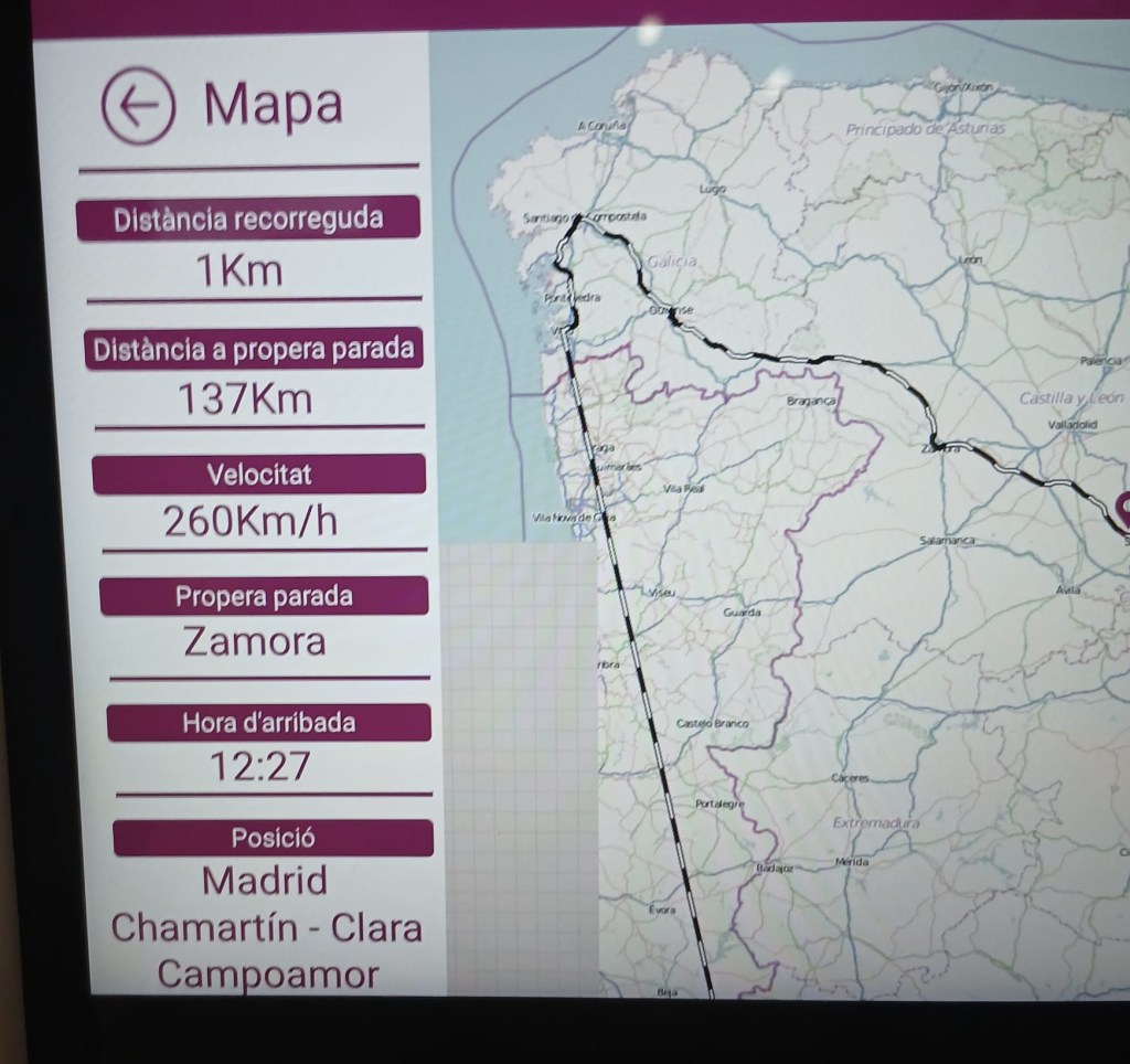 But at least our trip length has markedly reduced . . But it now says we’re stopping at Zamora, whereas we were told on departure that the first stop would be Ourense.