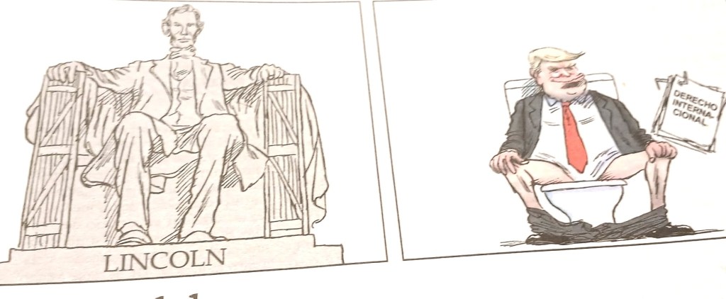 The FT refers to ‘havoc’ and has an article on the question of where Trump got his latest lunatic idea from. A Galician newspaper has the right answer . .