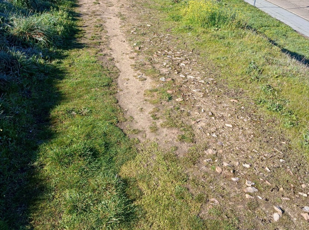 If you can imagine this strewn with granite rocks of various sizes and with a precipice to the right, you’ll have a good idea of how what hairy descent was like . . .