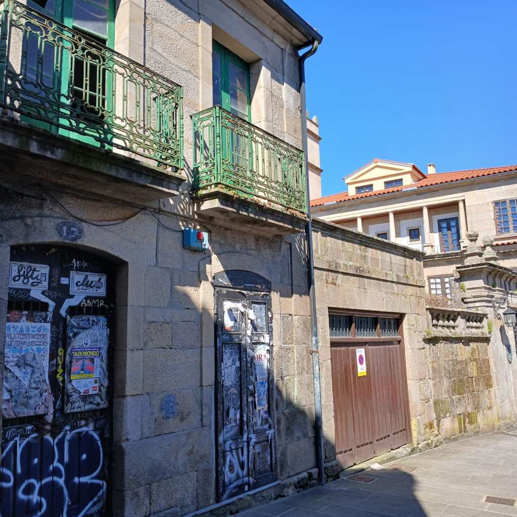 There are still a few decrepit buildings in Pv city’s old quarter, some of them cheek by jowl with stately places such as the Parador Hotel, La Casa del Barón, as here . . .