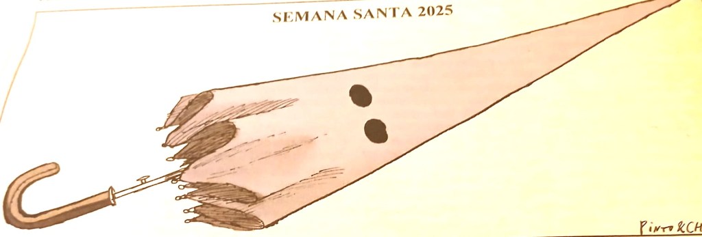 Today was forecast to be the wettest day of a pretty wet week. And it certainly was at 7am, when I could just about see the end of my garden. Last night’s procession was cancelled and I fear the same will happen tonight. An apt cartoon, then:-