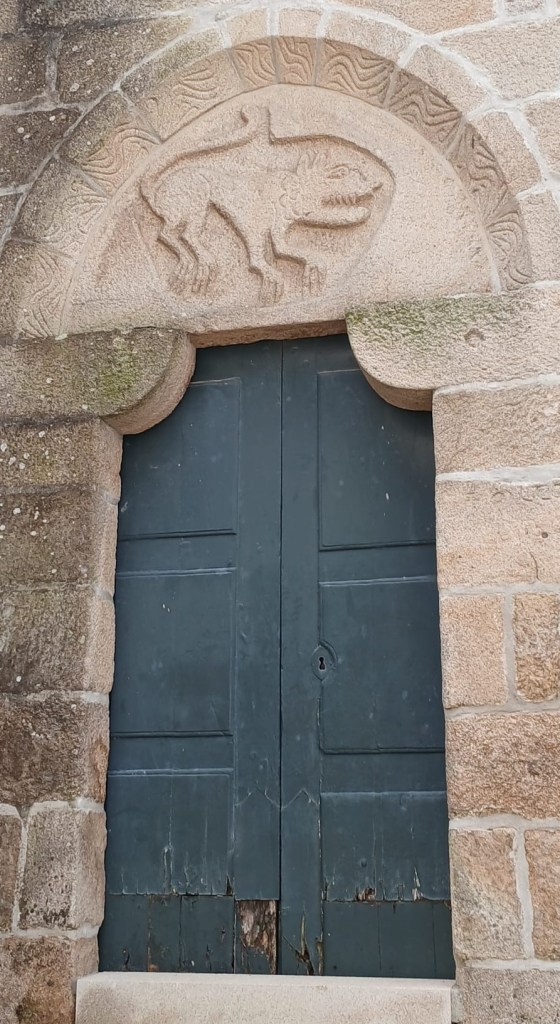 A 12th century depiction of a lion above a church door in Melgaço:-