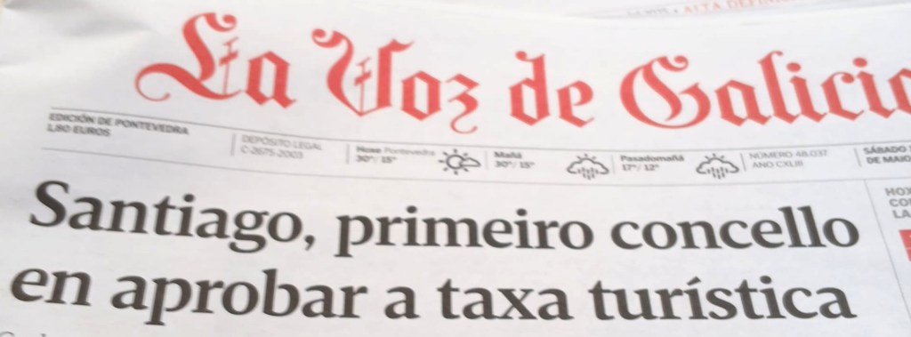 Which reminds me . . . Yesterday I went to one of our 3 (competing) tourist offices to get a copy of a guide to walks in Galicia. Years ago, this was in Spanish. Not now. If you want a subsidy here, your publication has to be entirely in Galician. I would say Pity the poor tourists from other regions but, in truth, it’s not terribly hard to understand the written form. Then again, I have absorbed some knowledge of the vocabulary common to Gallego and Portuguese.