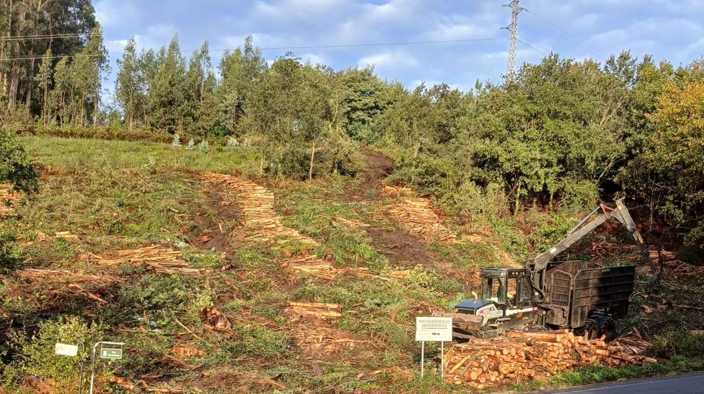 You’re never far from a eucalyptus wood or forest in Galicia. It’s an important cash crop. And – because it helps their spread in a few ways – the tree features – as a bad actor – in our (many) summer fires. Anyway, the crop is being harvested behind my house, with a huge impact on the scenery. I can no longer make my way with conviction along the many forest paths. Or at least not without the maps I had the foresight to sketch 4 or 5 years ago. And which were useful during Covid. For taking illegal walks at night.