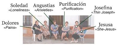 1. Women’s names. They can be even more pious than the ones the Puritans used. There’s also Consuelo (consolation), Peregrina (pilgrim), Nieves (snows), Ascensión (ascension) Remedios (remedy), etc.