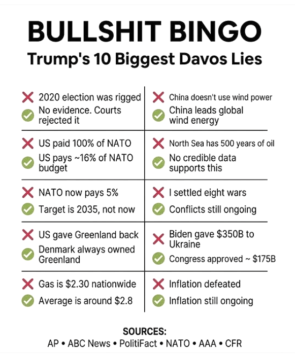 She adds that, with the Greenland ‘deal’ as an example, Trump’s fraudulence is almost mechanically predictable. There never is a plan. His ‘plan’ is always to sound like he has a plan long enough to get through the news cycle. His language of concepts replaces accountability with narrative. The Greenland ‘deal’ is a classic example of Trump selling an imaginary wins to compensate for real humiliation