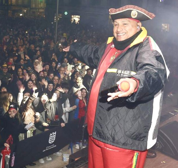 Last night was Pirate Night in Pv city, when the streets teemed with pubescent girls who all seemed to have bought their (rather scanty) costumes from the same Chinese bazar. Despite the light but persistent drizzle – the type that even a gentle breeze blows under your umbrella – very few wore any sort of coat or jacket. Drum bands converged from all parts of the city into the old quarter, followed always by dancing troupes whose numbers included girls as young as 3 or 4. As I walked out of the city at 11.30 there were still bands and troupes arriving from across the river. Entertainment was provided in Plaza España by King Africa – actually an Argentinean, I’m told . . .