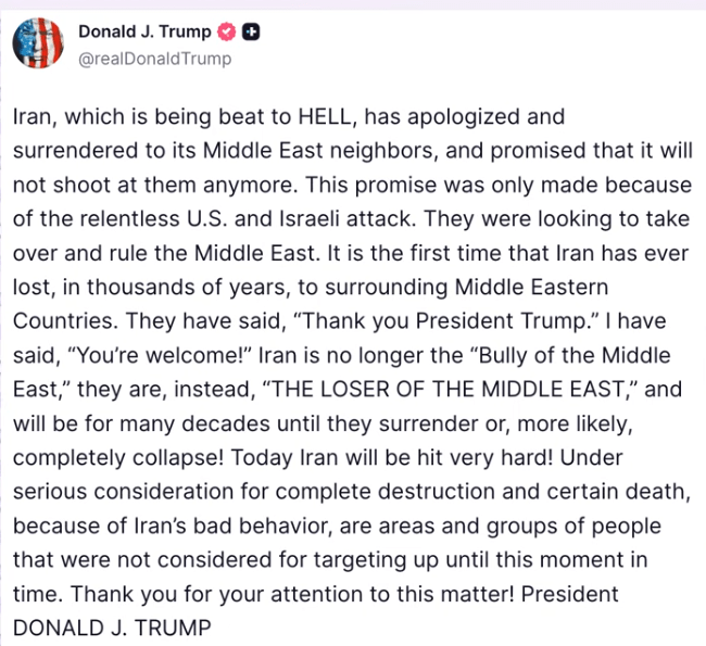 Fittingly for a reality TV star, Trump is now calling his attacks on other countries his ‘performances’.