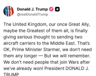 From a petulant, disturbed child in the White House:-