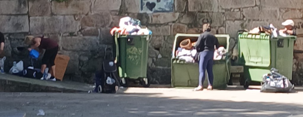 This is the unappealing weekly scene of folk rummaging through the leftovers thrown into the bins for something of value to them.