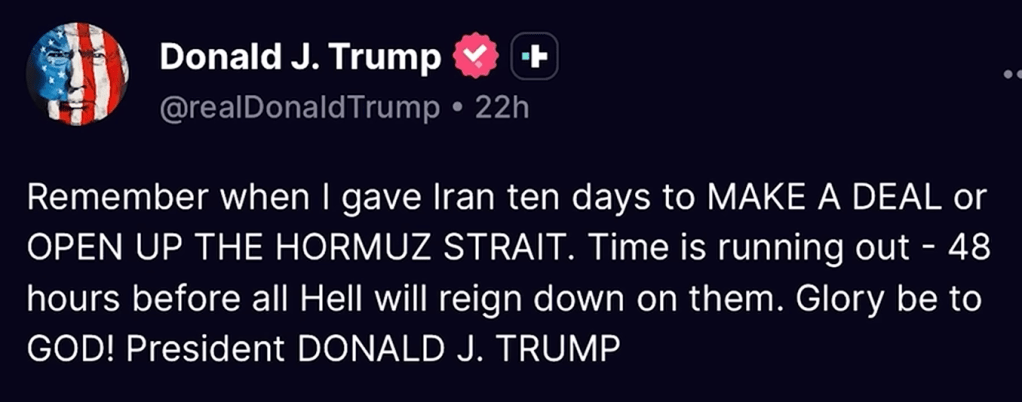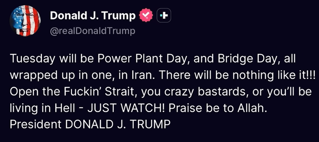 Will he do a TACO, on the basis that someone – Pakistan? – has presented a ceasefire proposal?. Iran would be stupid not to accept this, whatever their real intentions are.