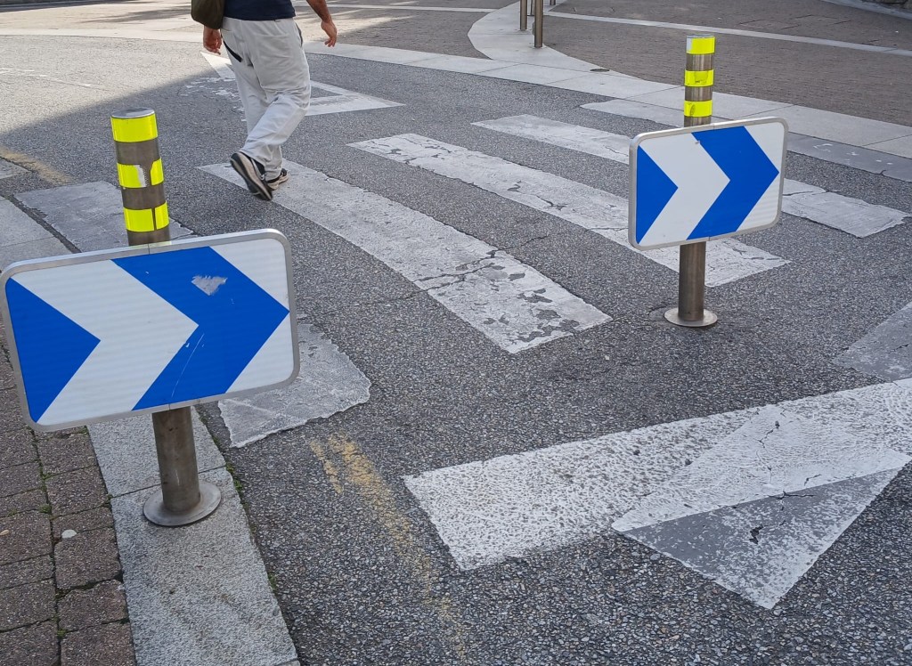 This traffic barrier is one one side of a roundabout/circle in Pv city, where the direction of travel was reversed.